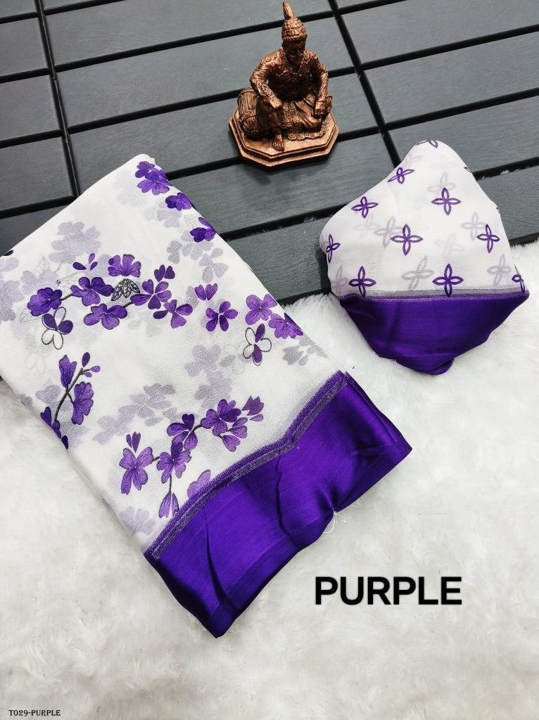 Description-Heavy moss chiffon saree with floral print and zari satin border all over sarees attached with perfectly matched pallu & blouse peice
