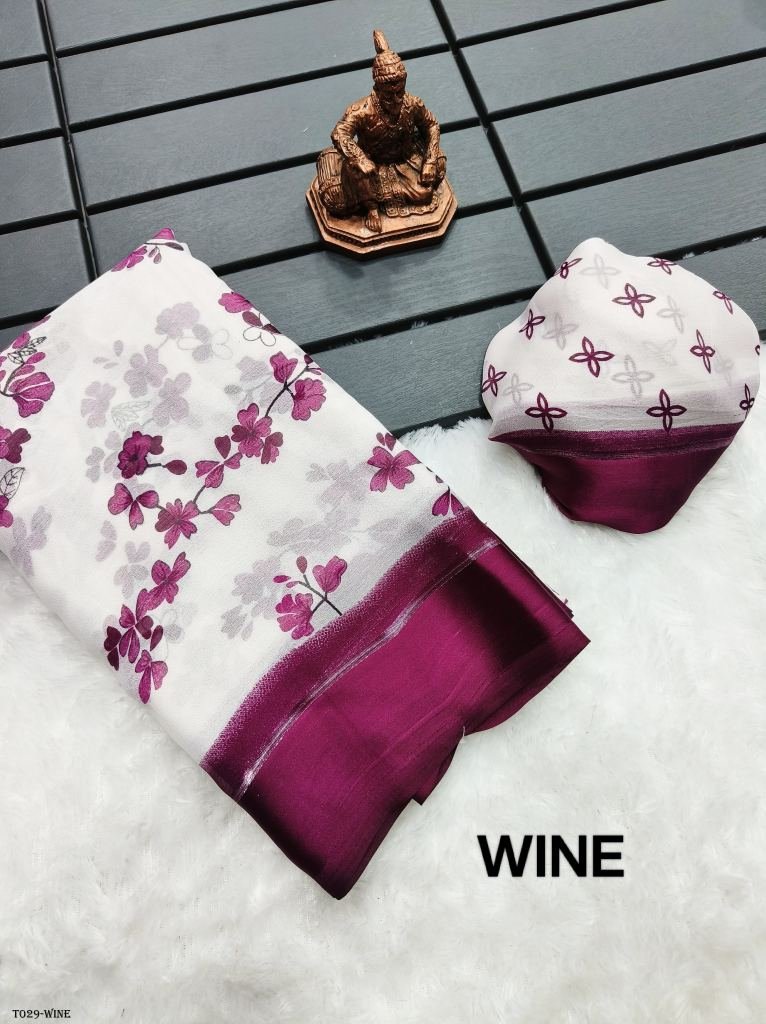 Description-Heavy moss chiffon saree with floral print and zari satin border all over sarees attached with perfectly matched pallu & blouse peice