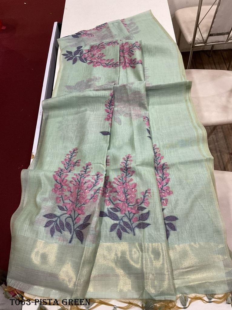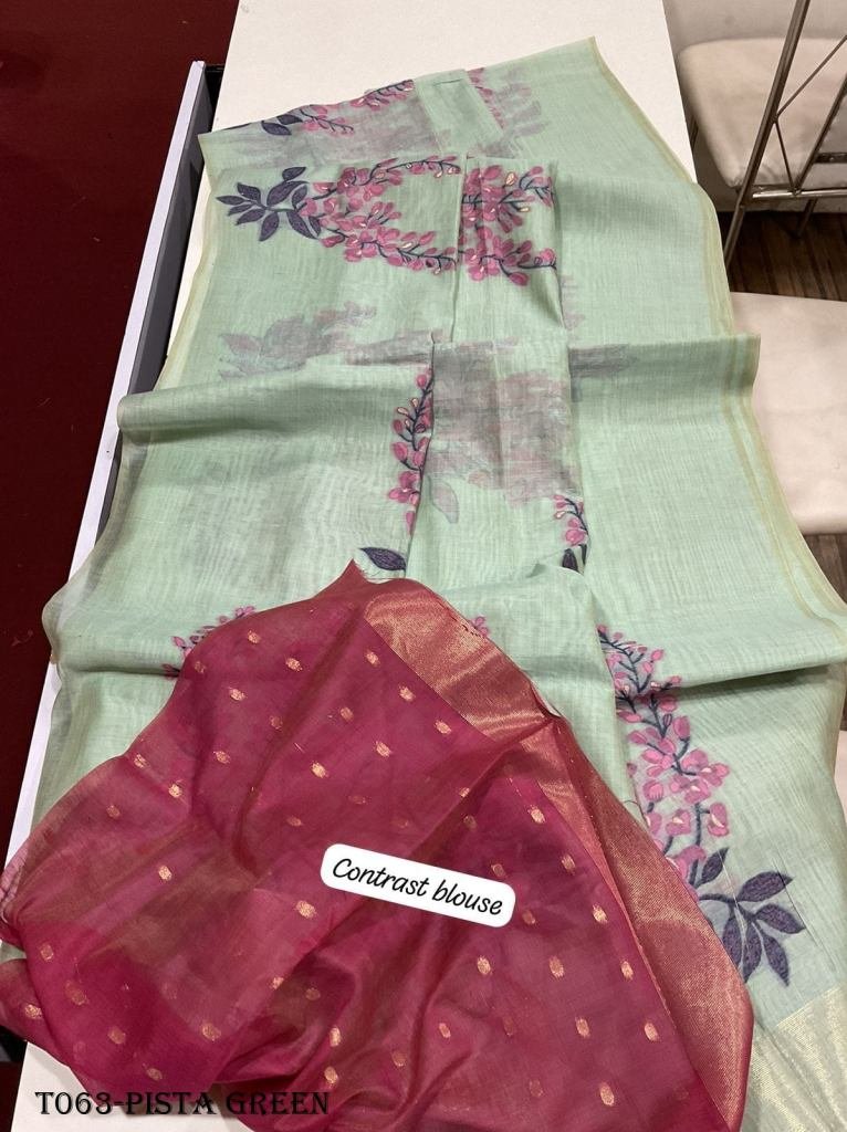 Fabric:Premium soft muga silk saree with all over unique floral weaving pattern with small zari patta on pallu with classic tassels and contrast blouse piece