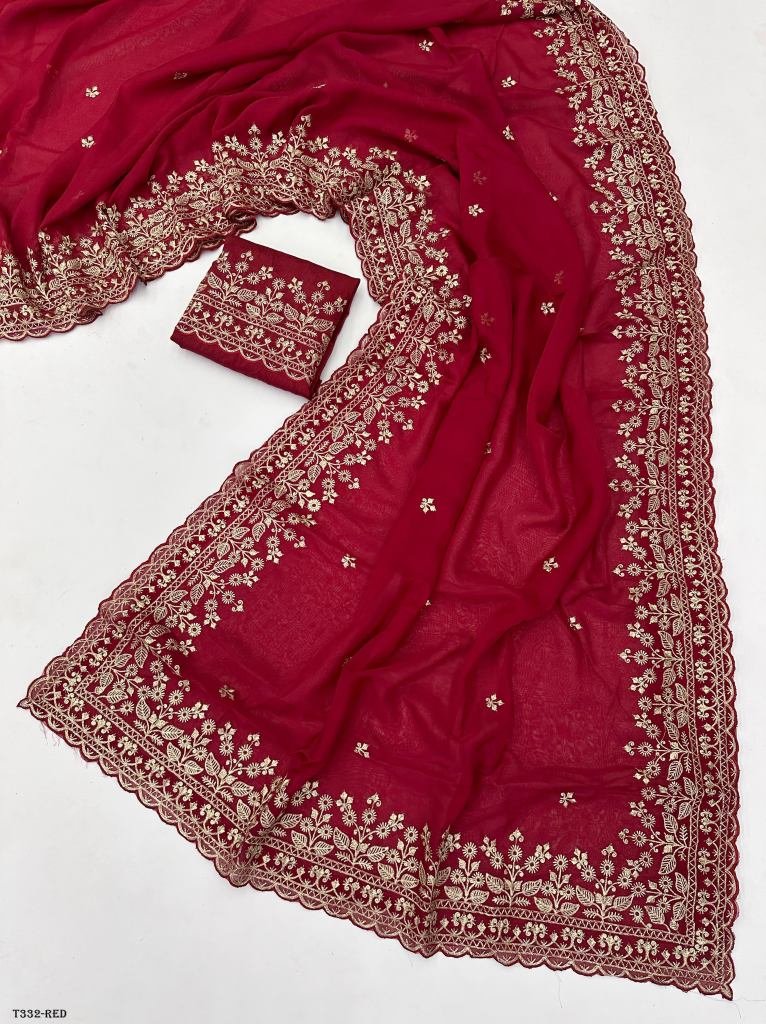 Soft organza silk saree with beautiful golden jari embroidery work all over and unstitch silk blouse with jari embroidery work