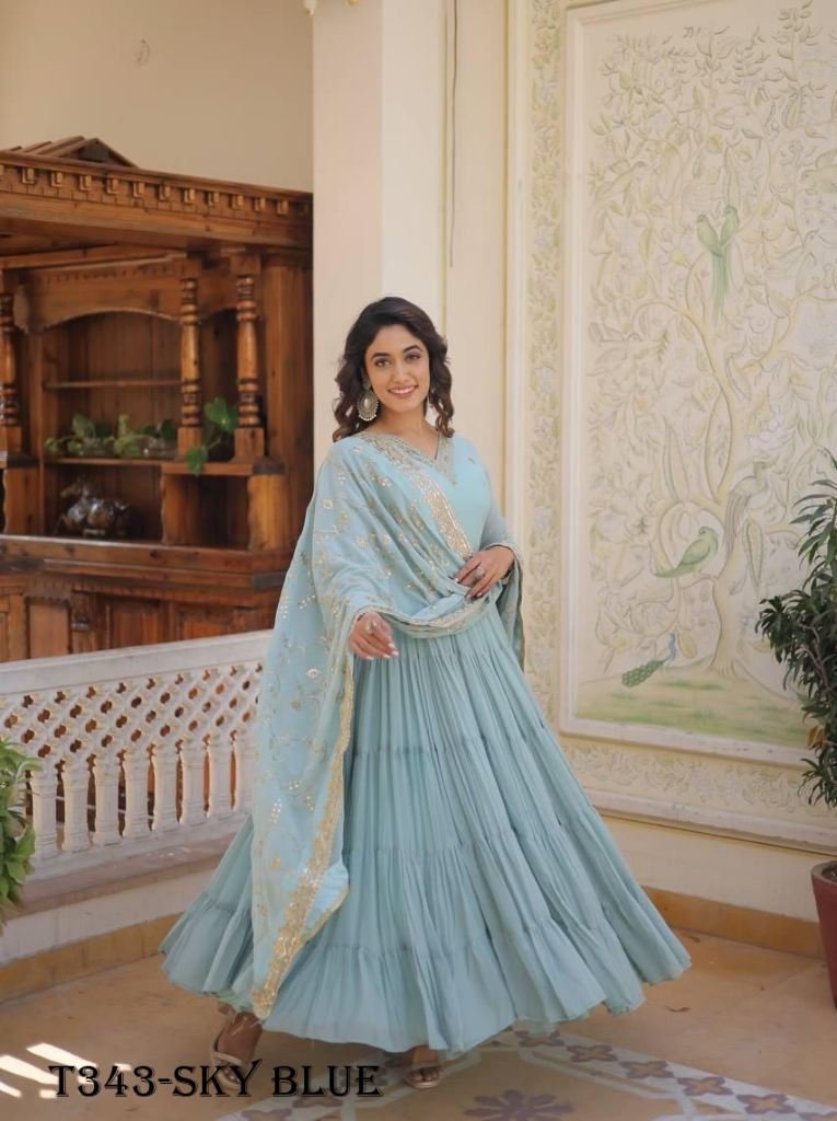Women Wear Sky Blue Georgette Gown With Dupatta
