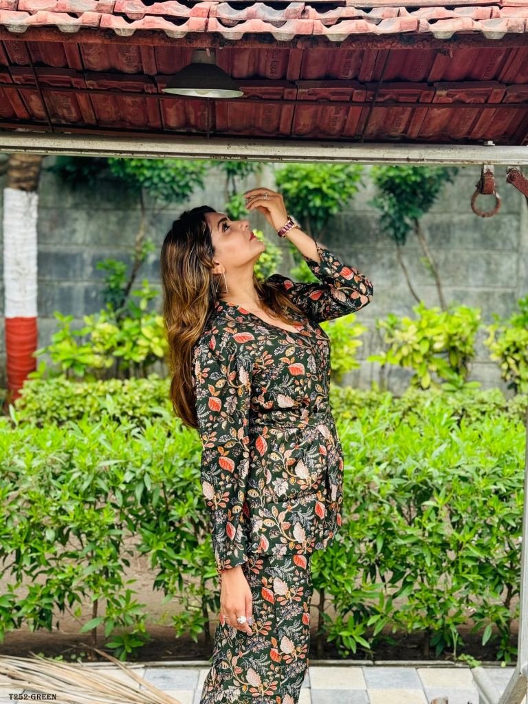 Womens Wear Green Cotton Digital Print Co Ord Set