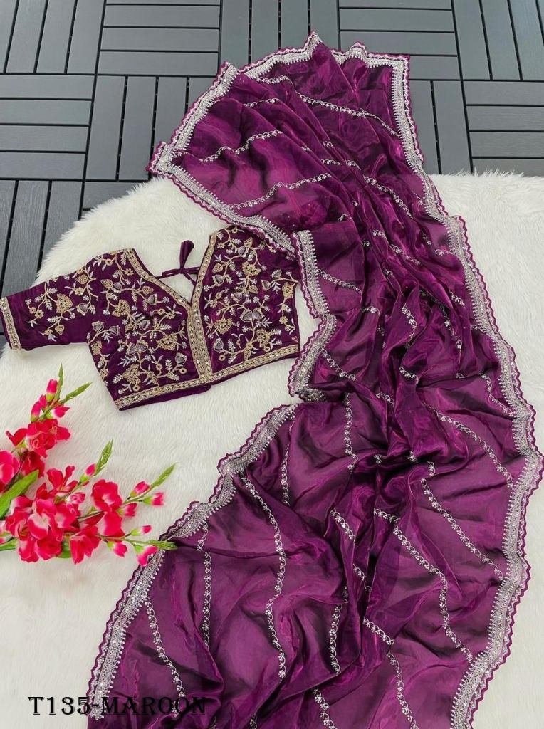 Saree:Pure soft Jimmy choo silk sarees with amazing 3 mm sequence work with work border nd aarco