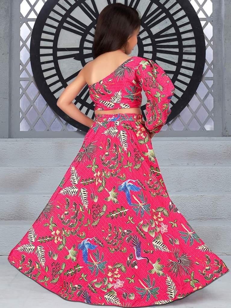 Yaana vol 1 By Aayaa Pink One Shoulder Blouse with lehenga for Kids Girls -101