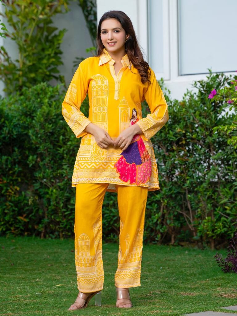 New Launching In Abstract Printed Muslin Silk Co-ord Set With Cotton Linning.