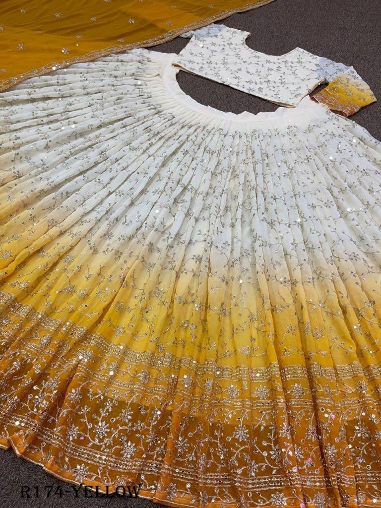 LAHENGA WORK : DIGITAL PRINT WITH FANCY EMBROIDERY 5mm SEQUENCE WORK