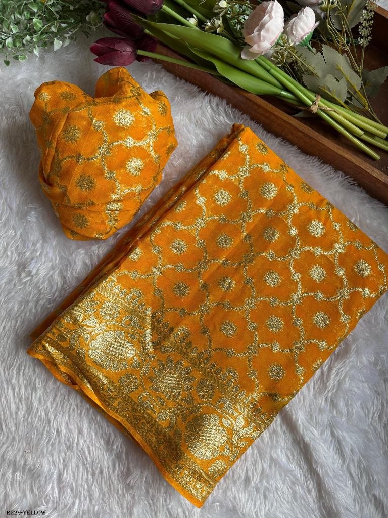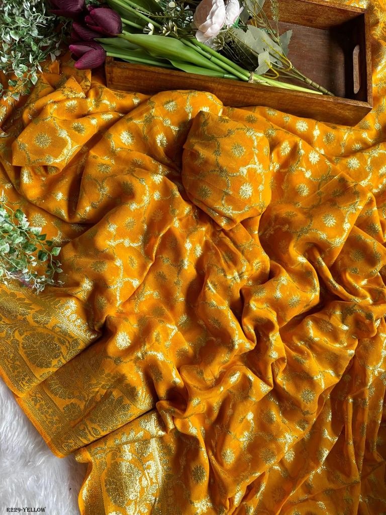 Fabric :- Viscose GeorgettePattern :- Banarasi PrintWork :- Zari WorkSaree Length :- 5.5Blouse Length :- 0.8Occasion :- Festival, Wedding, Function