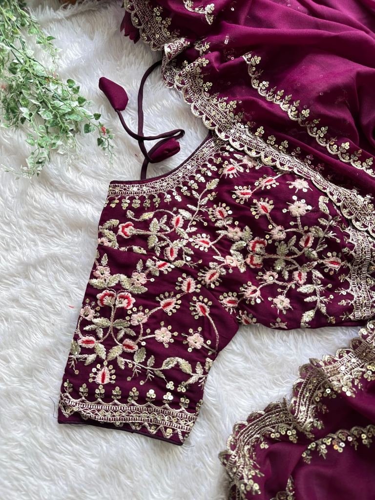 Blouse- Heavy Star Georgette With Shimmer Fabric With Complete Thread Work And Sequins With Matt Work .
